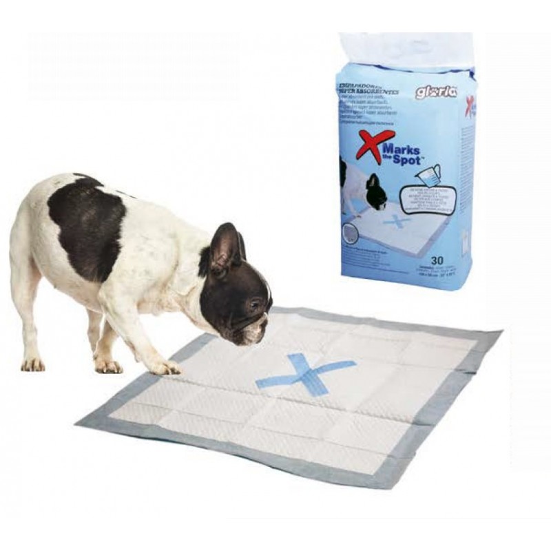 I tappetini assorbenti Gloria sono composti da 5 differenti strati contenenti polimeri super assorbenti. La X centrale contiene i feromoni attrattivi per aiutare il cane nell'apprenderne l'utilizzo. Inoltre i tappetini assorbenti sono provvisti di adesivi per il fissaggio al pavimento.