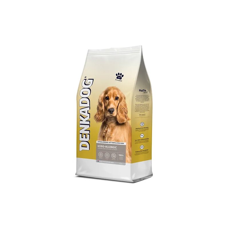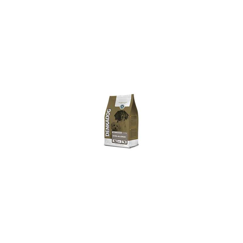 Sviluppato per cani con una pelle o una digestione sensibile. In molti casi questo tipo di situazione rivela un’allergia dell’animale verso un certo tipo di alimento manifestando, non di rado, problemi quali diarrea o problematiche cutanee: la pelle è irritata ed il cane comincia a grattarsi. A differenza di altri tipi di alimenti anti-allergici, dove spesso viene usata la carne di agnello in combinazione con altri tipi di proteine animali, Hypo-Allergic è un prodotto rigorosamente monoproteico; questo facilita in maniera determinante l’individuazione del tipo di materia prima che provoca l’eventuale allergia. Dal 1983 Denkadog , in collaborazione con veterinari e nutrizionisti, si dedica allo sviluppo di una dieta sana ed equilibrata per i nostri amici a quattro zampe, secondo le loro diverse esigenze. La nostra convinta filosofia di base è: “ prevenire è meglio che curare”, quindi non è solo importante ciò che un cibo contiene ma lo è, altrettanto, quello che non contiene. Il corretto rapporto tra i diversi ingredienti ed un moderno processo di produzione lo rende un alimento naturale e croccante, equilibrato e bilanciato , facilmente digeribile. Con aminoacidi essenziali, un basso contenuto di sodio, tutte le vitamine ed i sali minerali necessari, senza dannosi eccessi proteici e con un adeguato rapporto calcio/fosforo, il vostro amico a quattro zampe si sentirà pieno di vitalità. Denkadog è del tutto privo di “chimica” (conservanti, aromatizzanti, ecc.) ed è un prodotto rigorosamente Cruelty free (OIPA, PETA e Consumo consapevole). Prodotto in conformità con le norme alimentari HACCP + ISO9001: 2000 e GMP.