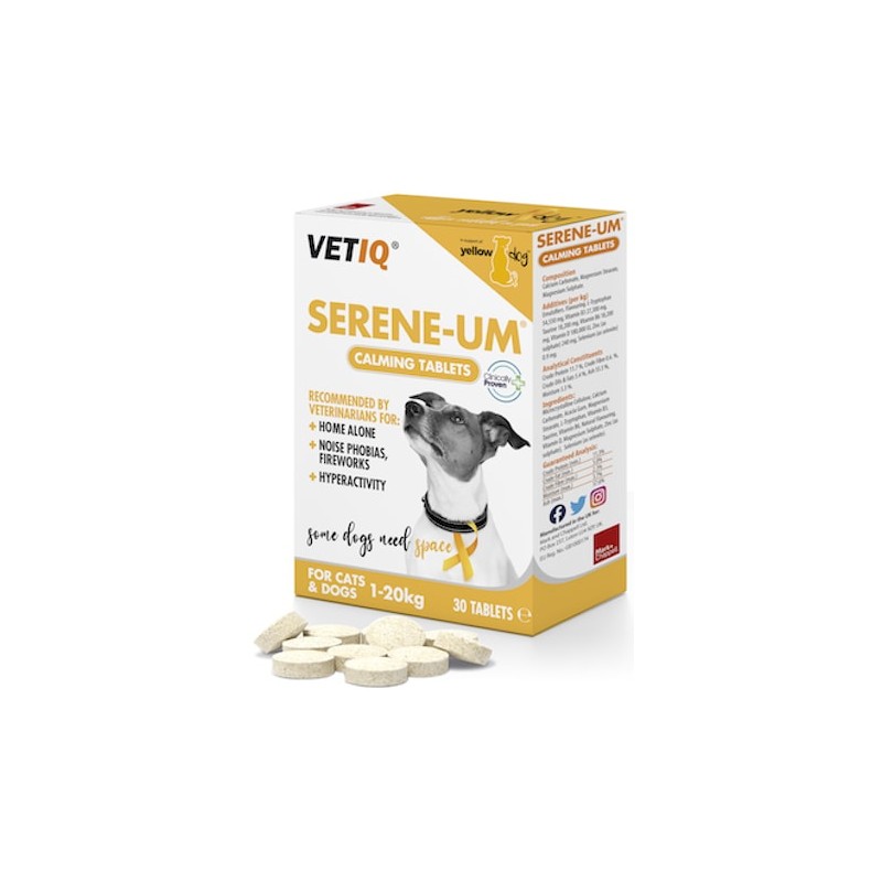 VetIQ Serene-UM® è un integratore alimentare naturale contenente una miscela appositamente formulata di aminoacidi essenziali, vitamine e minerali ed è stato raccomandato dai veterinari per combattere la tensione e lo stress negli animali domestici, senza avere un effetto sedativo. Serene-UM® è il primo passo verso un animale domestico più soddisfatto. Funziona controllando lo stato emotivo sottostante per calmare il tuo animale domestico, in modo che il comportamento appreso da una situazione stressante possa essere corretto attraverso la riqualificazione. In sostanza, Serene-UM® aiuta nella gestione della causa dell'ansia.