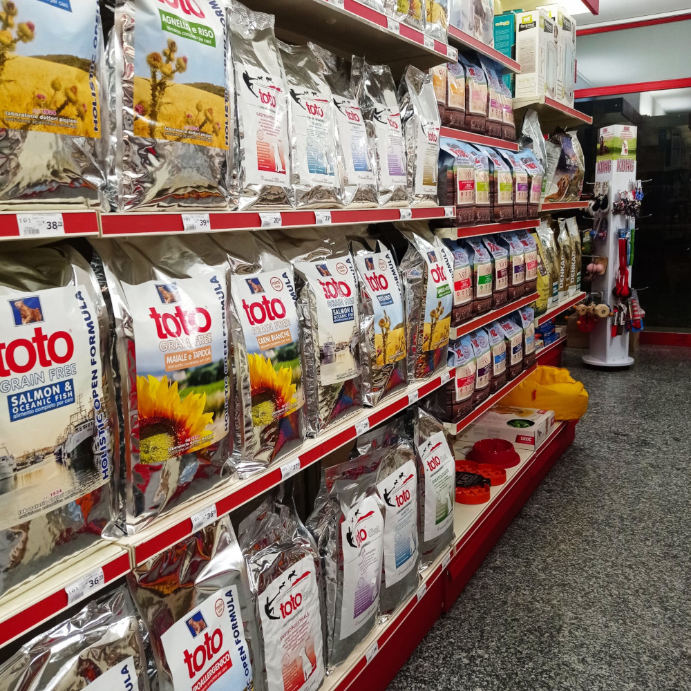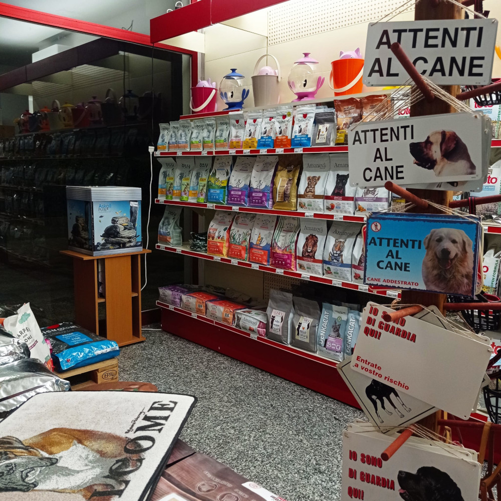 Particolare attenzione viene fatta nella selezione degli alimenti sia fisiologici che dietetici, i quali devono essere di alta qualità e contenere solo prodotti naturali freschi senza coloranti ne conservanti artificiali. Offriamo inoltre prodotti per l'igiene, la toelettatura, il gioco, lo sport, l'addestramento e anche capi di abbigliamento.