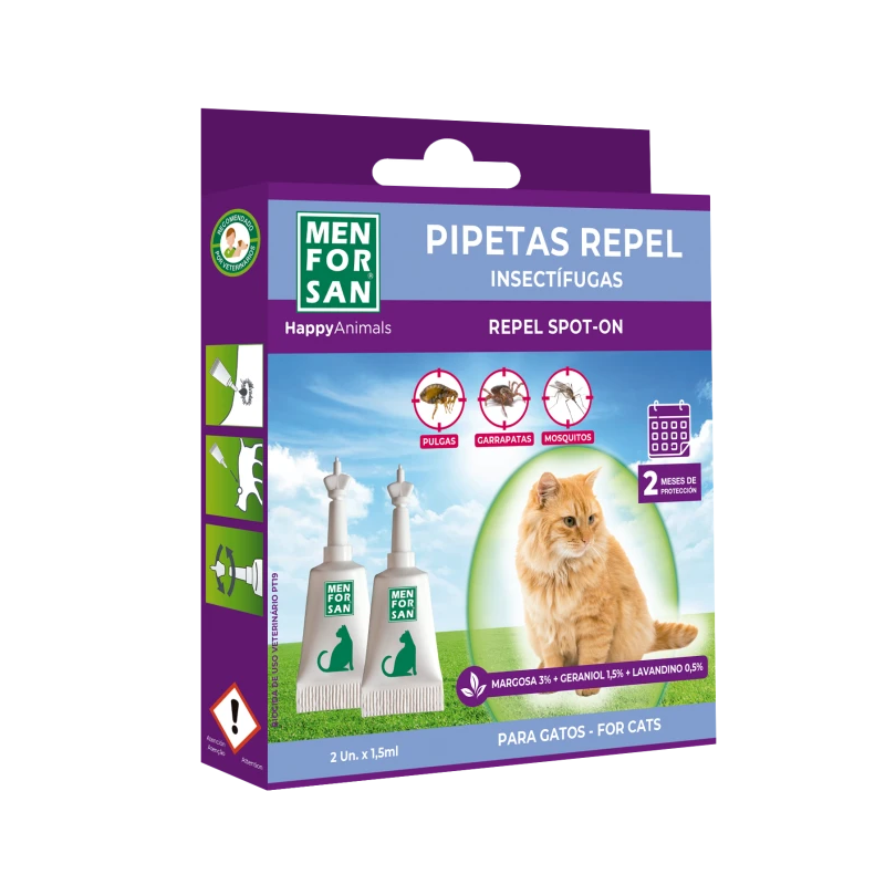 Spot-on repellente/antiparassitario per gatti contro infestazioni da PULCI, ZECCHE, PIDOCCHI, ACARI e punture di ZANZARE.